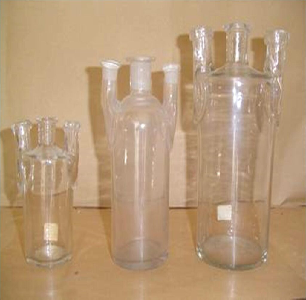 Vaso de Woolf con tres tubuladoras o tres aberturas.